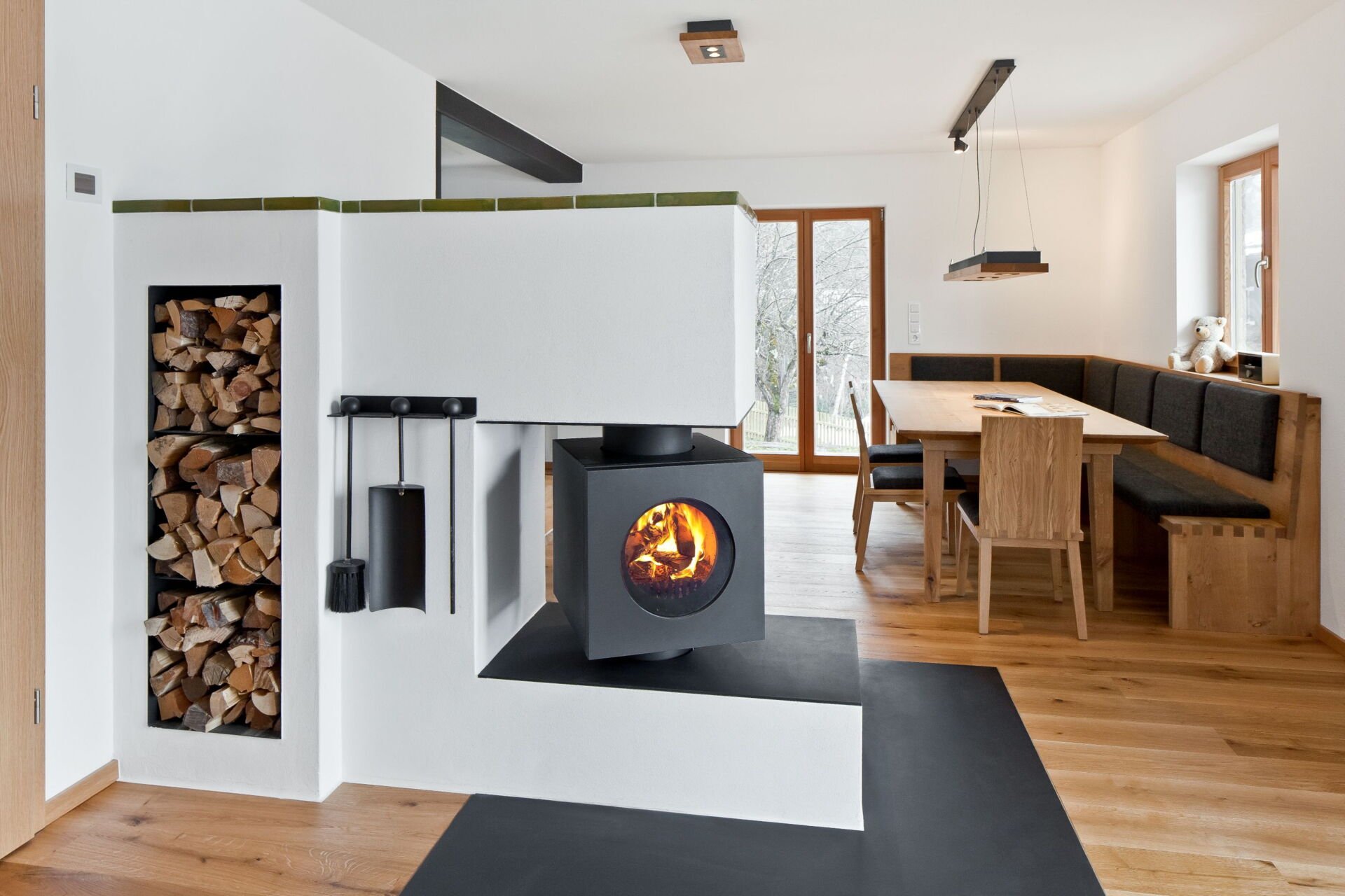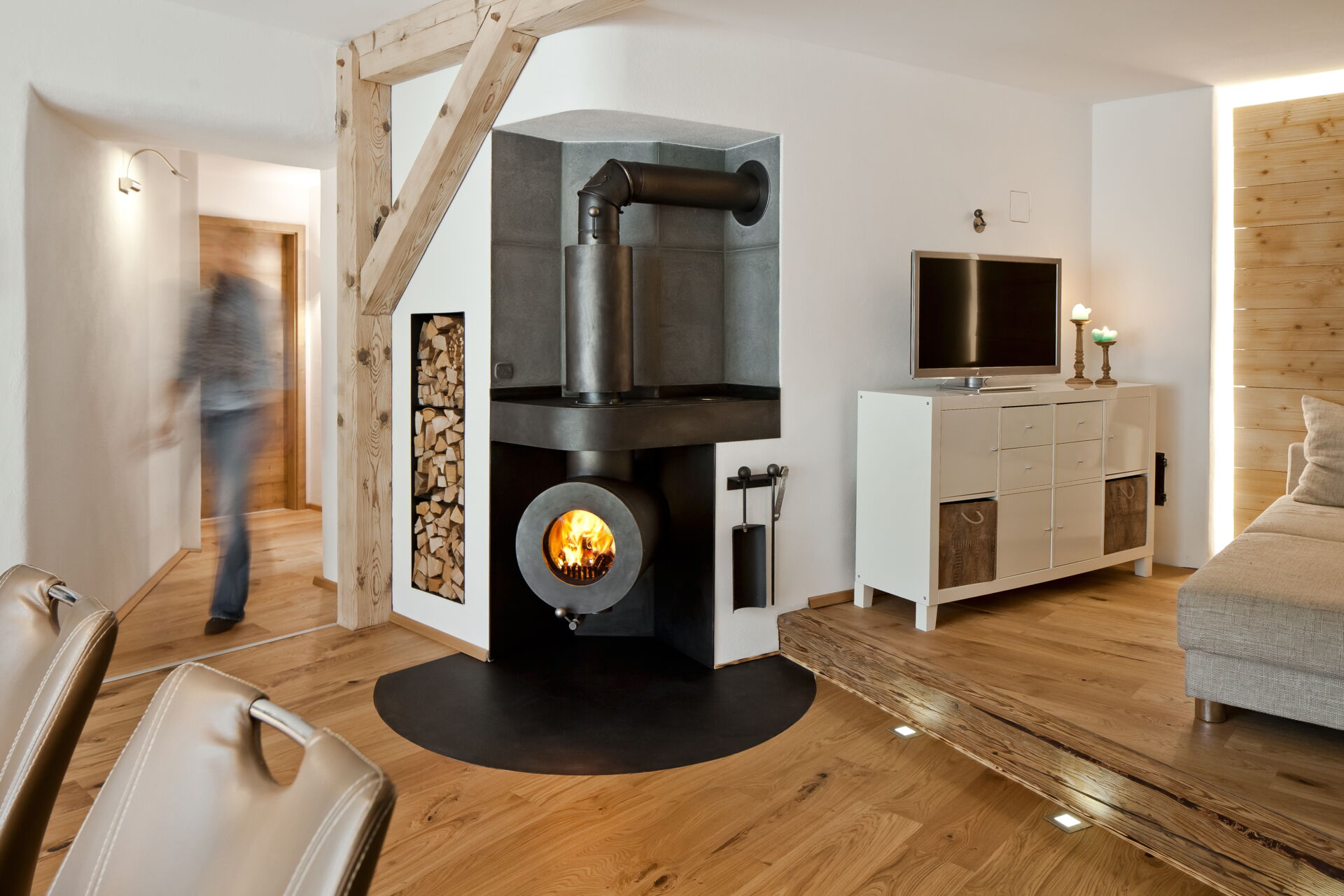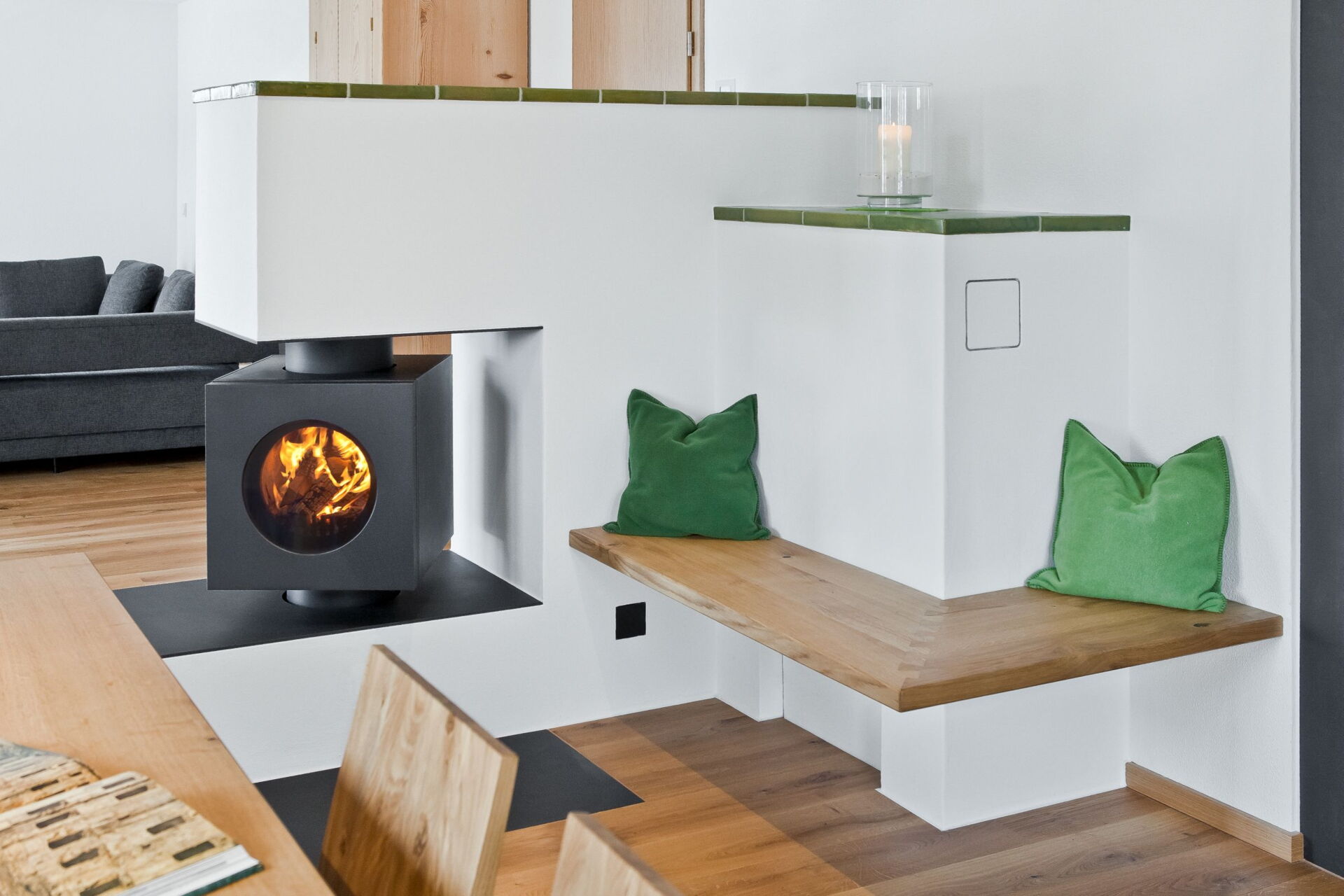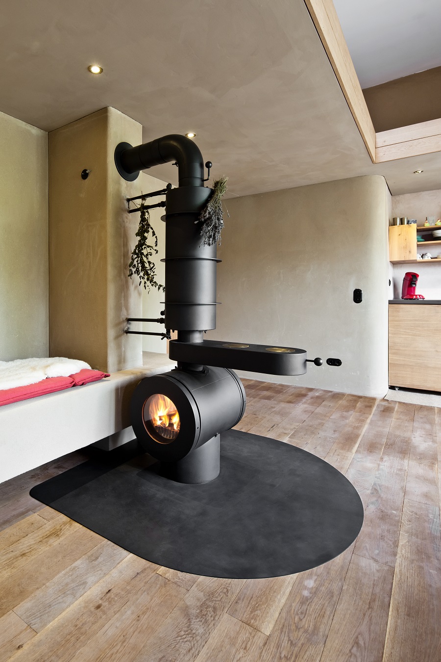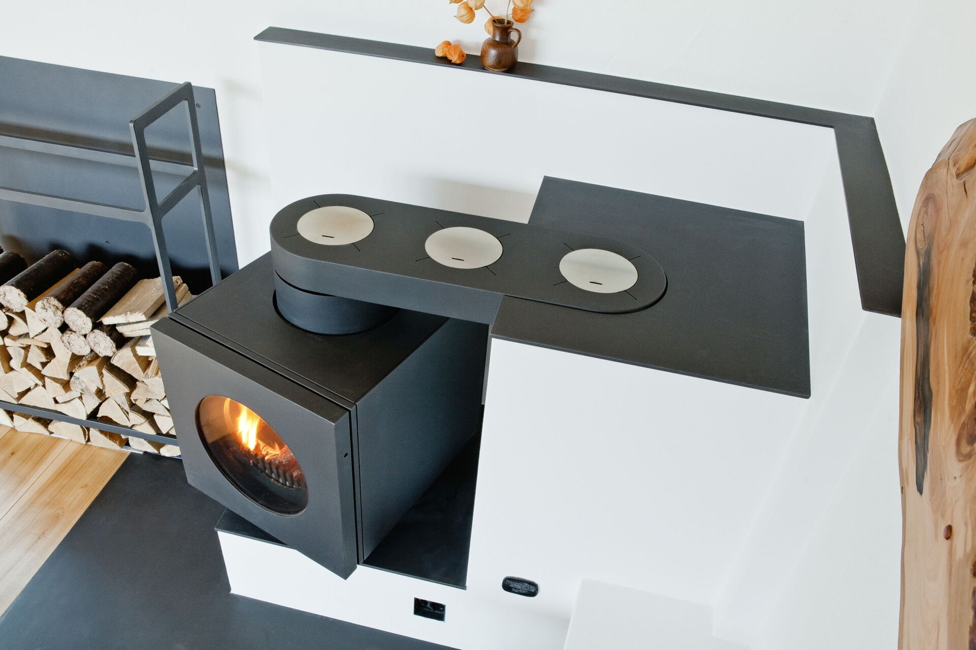 Das Herzstück hierbei ist der firetube burner. Die ungewöhnliche runde Form des Ofeneinsatzes ermöglicht es im Kachelofendesign neue Akzente zu setzen. Es eröffnen sich völlig neue Optionen der Raumgestaltung. Frei schwebend und drehbar sind ebenso Möglichkeiten wie ein klassischer Kachelofen oder ein moderner Raumteiler, der z. B. von beiden Seiten geschürt werden kann.