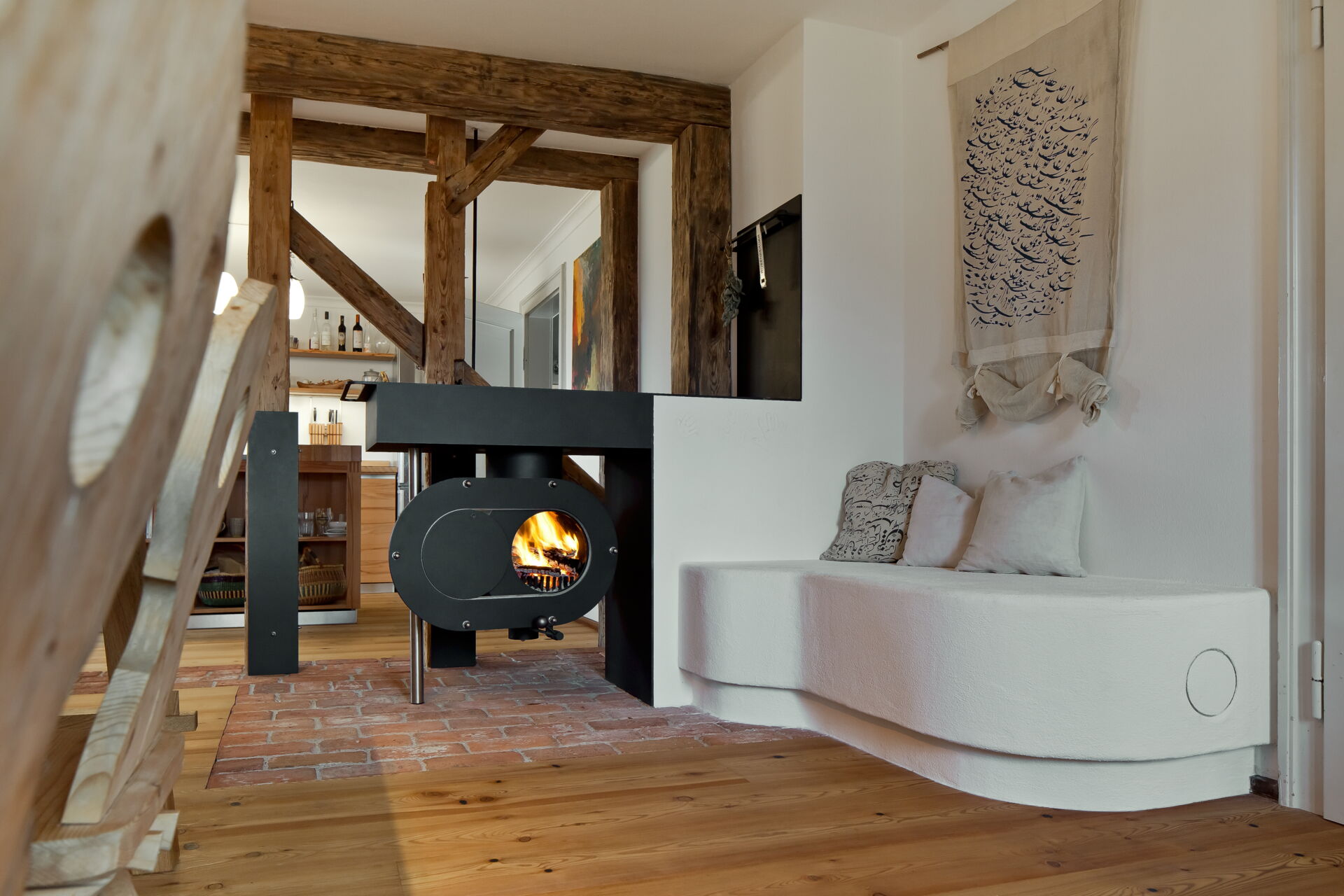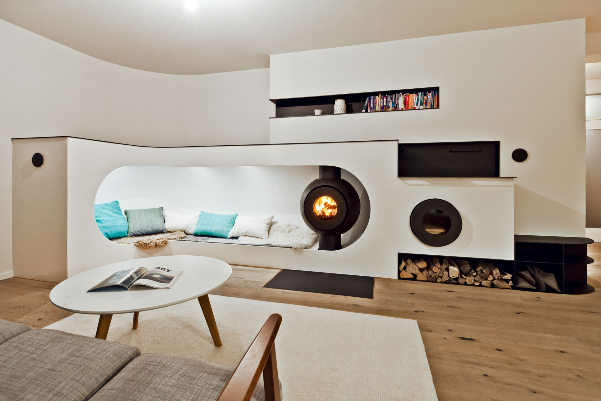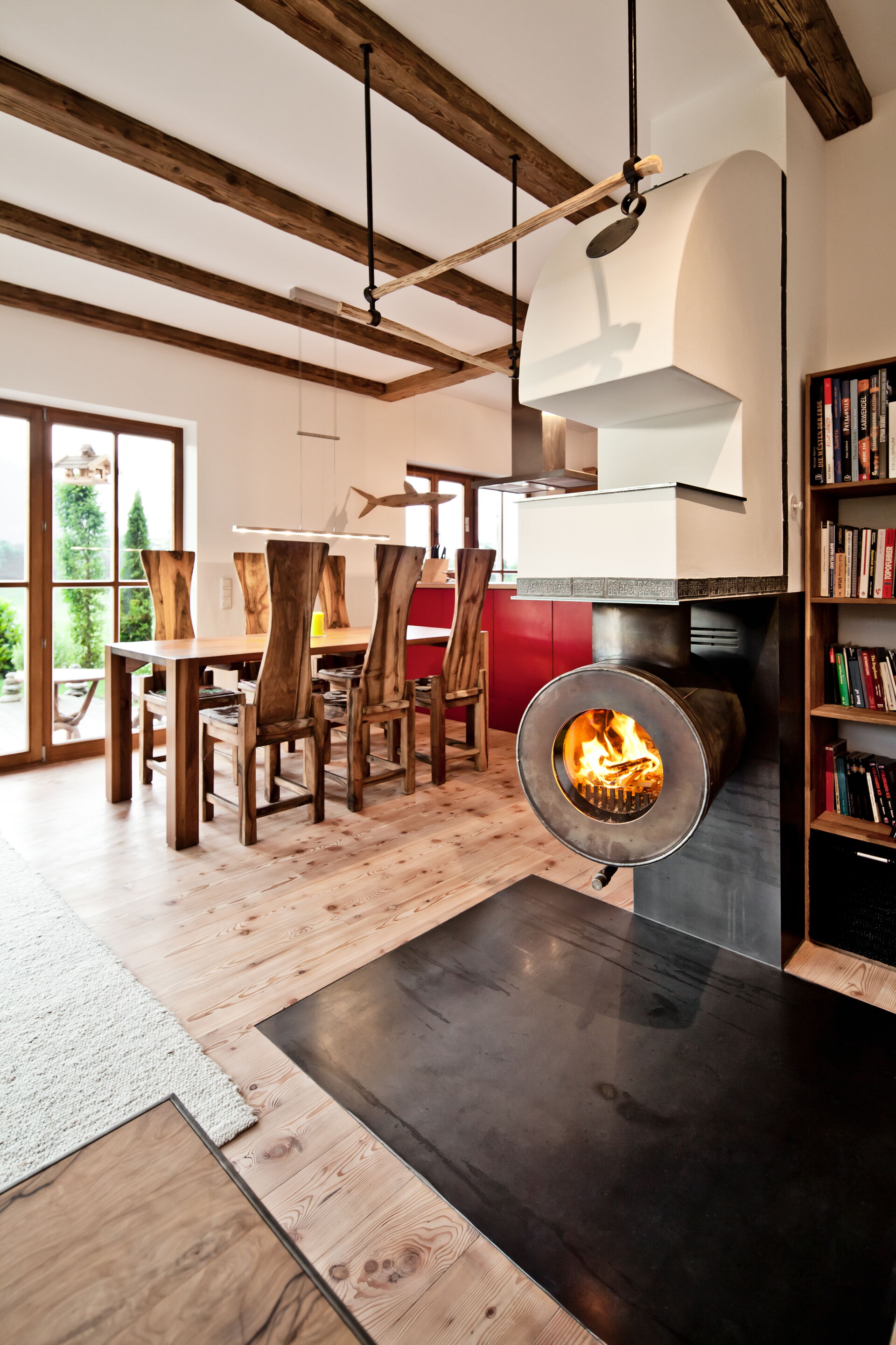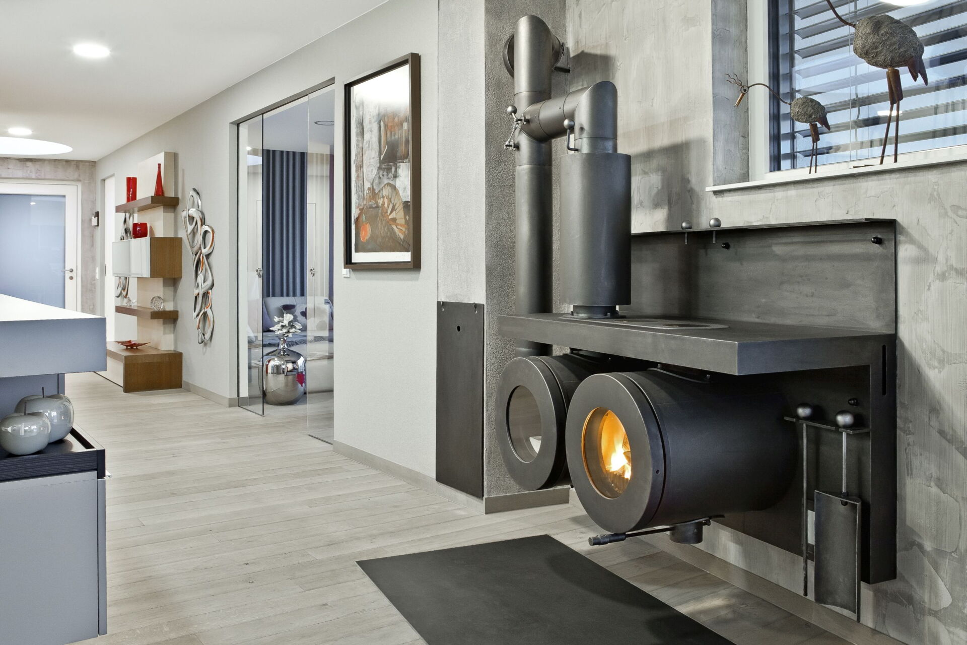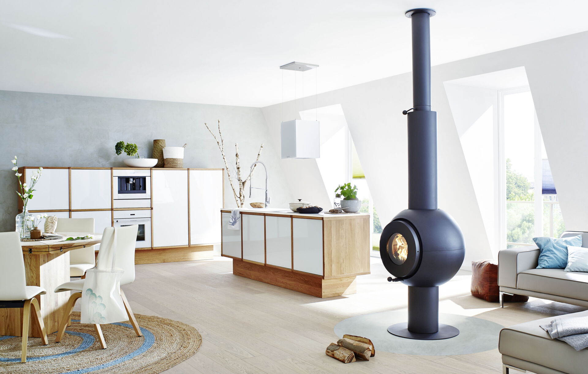 Das Herzstück hierbei ist der firetube burner. Die ungewöhnliche runde Form des Ofeneinsatzes ermöglicht es im Kachelofendesign neue Akzente zu setzen. Es eröffnen sich völlig neue Optionen der Raumgestaltung. Frei schwebend und drehbar sind ebenso Möglichkeiten wie ein klassischer Kachelofen oder ein moderner Raumteiler, der z. B. von beiden Seiten geschürt werden kann.
